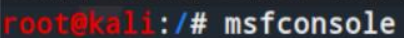(1)在kali中执行“msfconsole”,启动metasploit