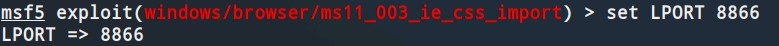 (9)为避免冲突设置LPORT:运行命令:set LPORT 8866