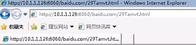 (11)在 Win7靶机打开IE,访问http://10.1.1.128:8060/baidu.com,模拟受害者误点击网页,靶机IE如下图所示,攻击者Metasploit显示如下图所示信息表明攻击成功。