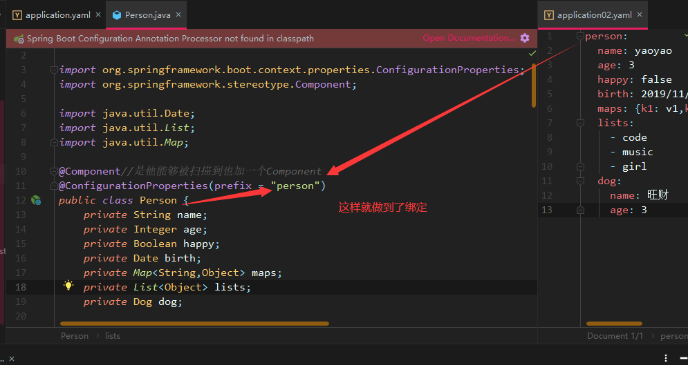 <!-- 导入配置文件处理器,配置文件进行绑定就会有提示,需要重启 -->