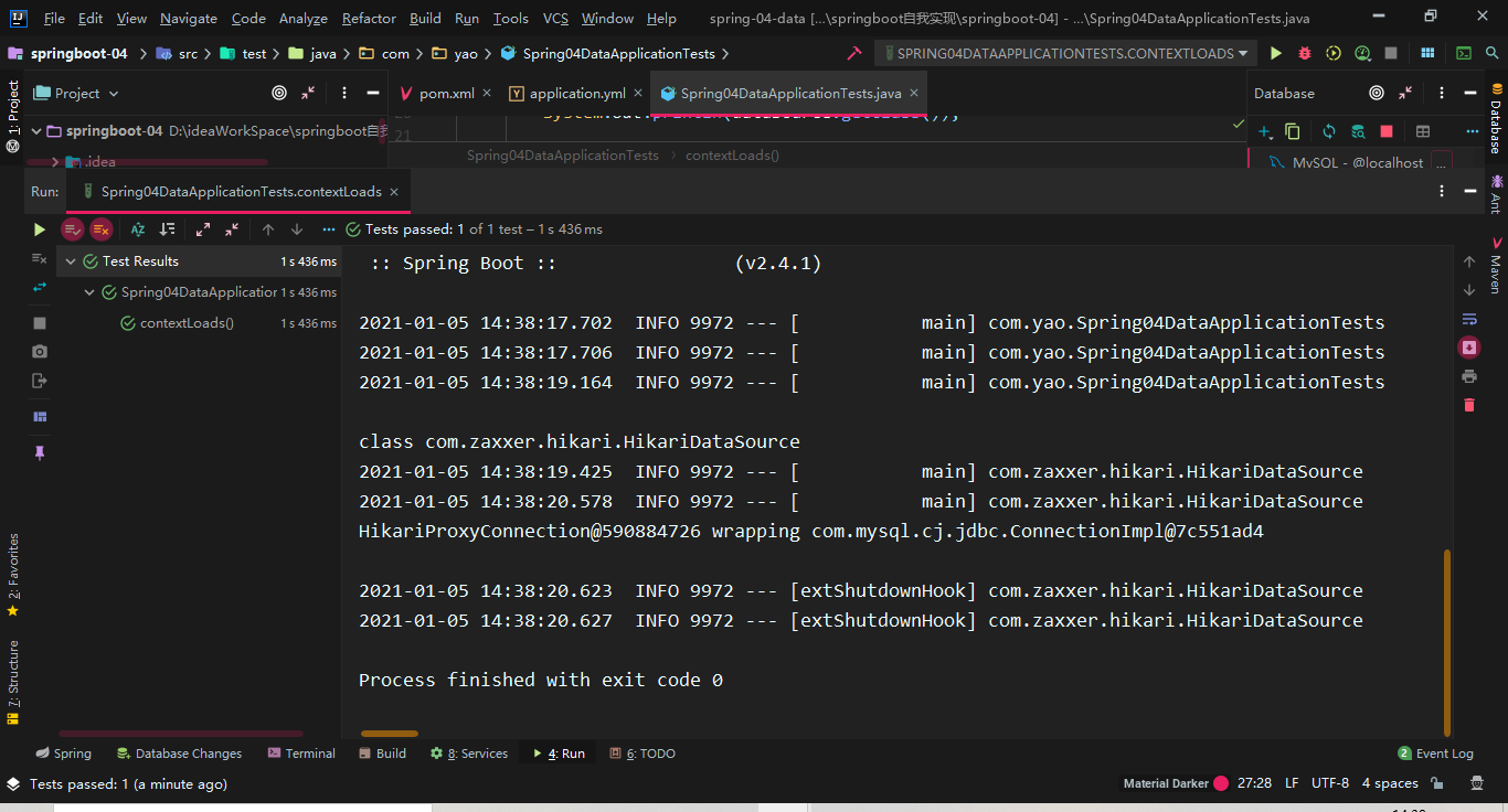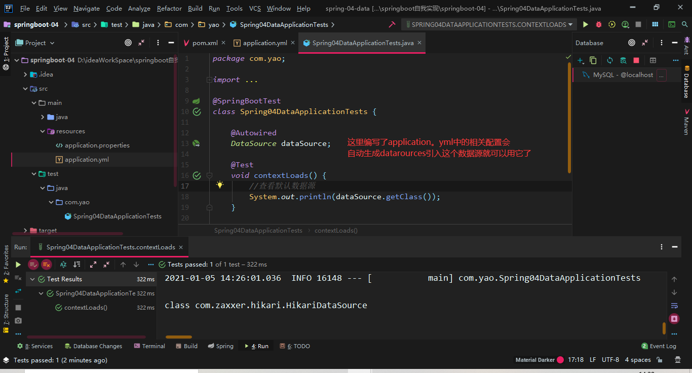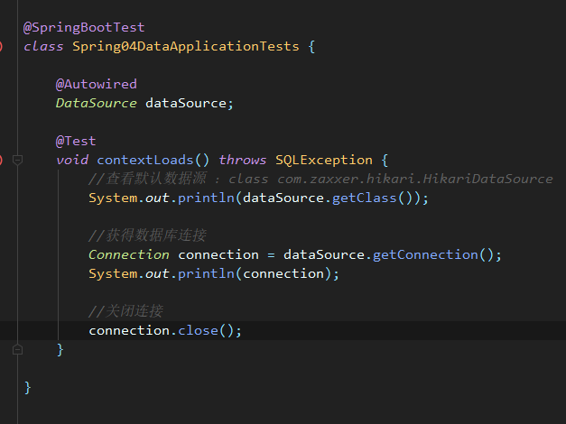 3.在测试类中编写相关代码,打印是否成功连接(输出为控制台中显示的内容)