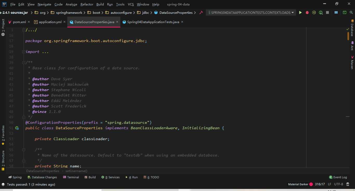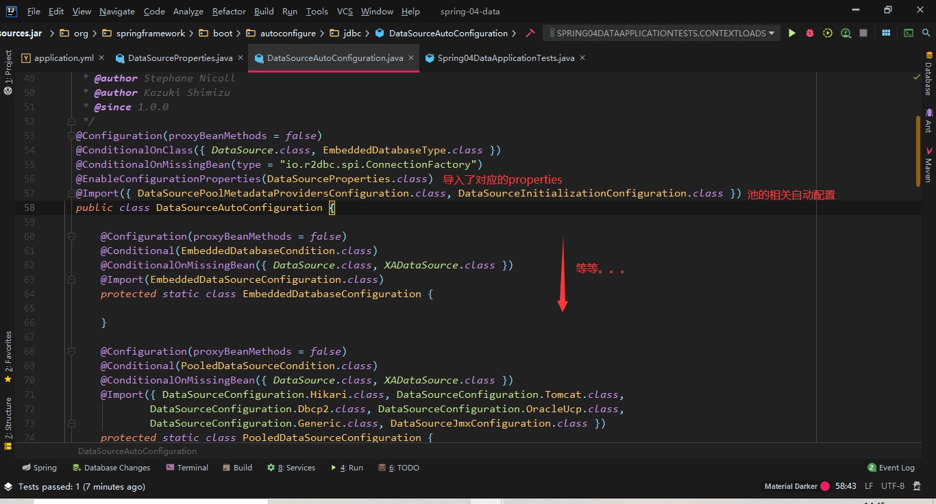 点进去之后是一个DataSourceProperties,那么同样对应的有一个DataSourceAutoConfiguration