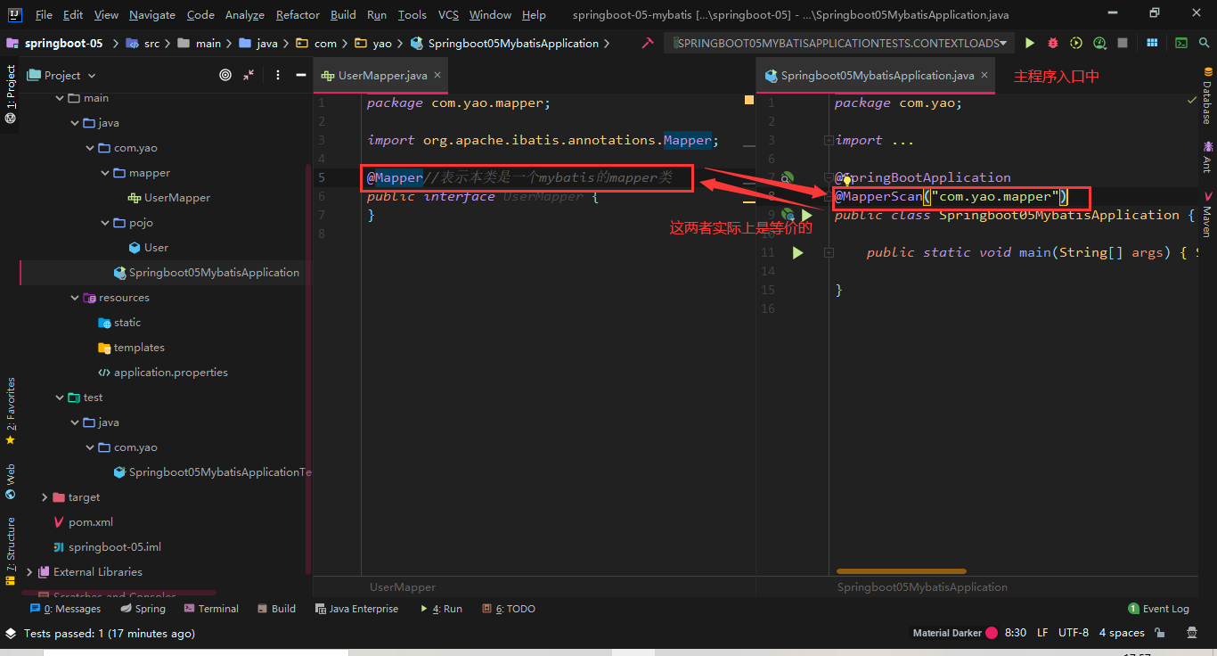4.创建mapper文件夹,并在里面放与mybatis相关的mapper文件