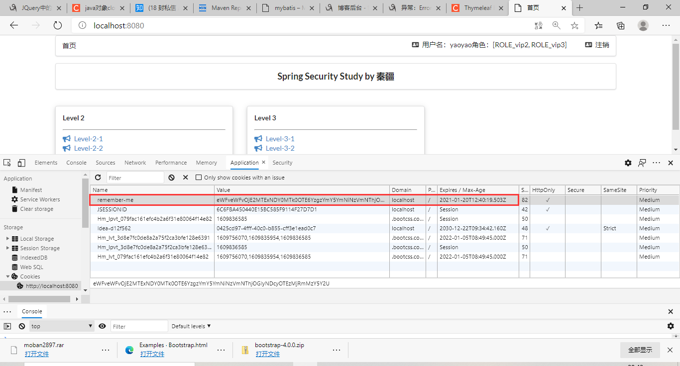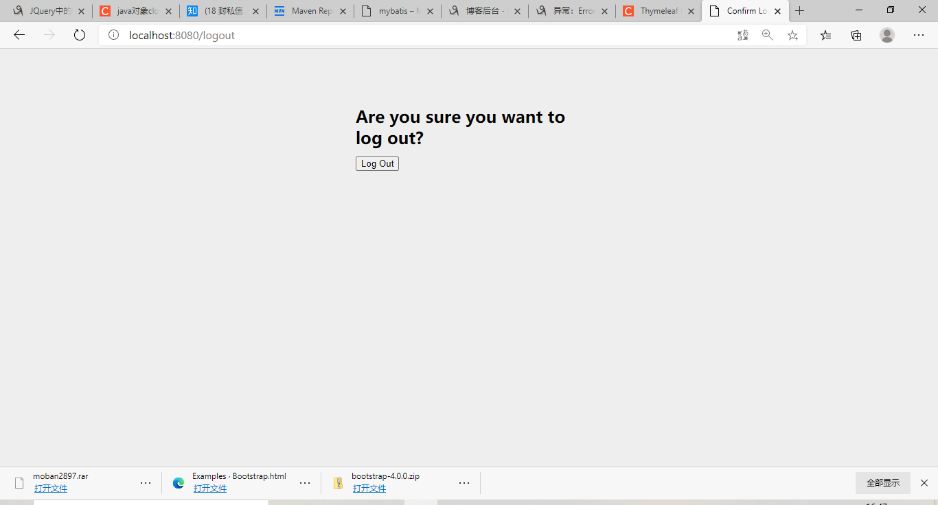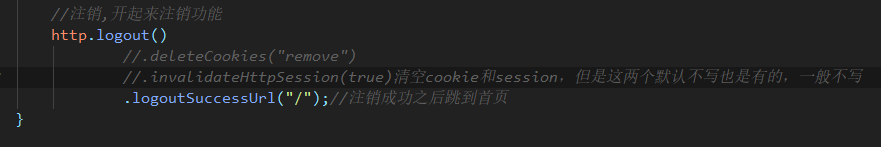 8.如果注销404了,就是因为它默认防止csrf跨站请求伪造,因为会产生安全问题,我们可以将请求改为post表单提交,或者在spring security中关闭csrf功能;我们试试:在 配置中增加 http.csrf().disable();