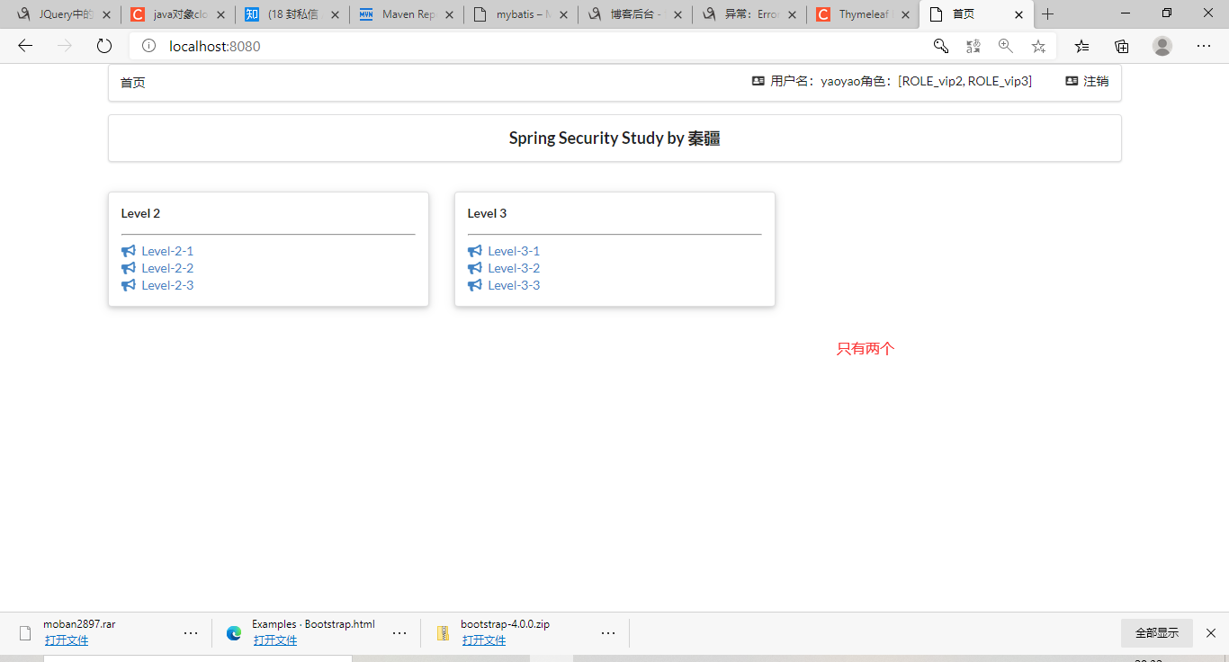 6.实现不同权限的用户显示不同的模块,thymeleaf和SpringSecurity整合