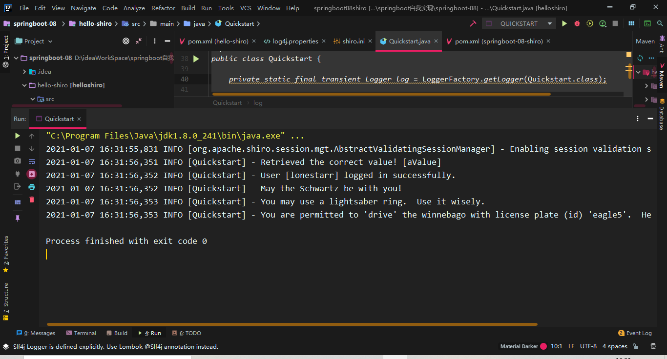 // Now that a simple Shiro environment is set up, let's see what you can do: