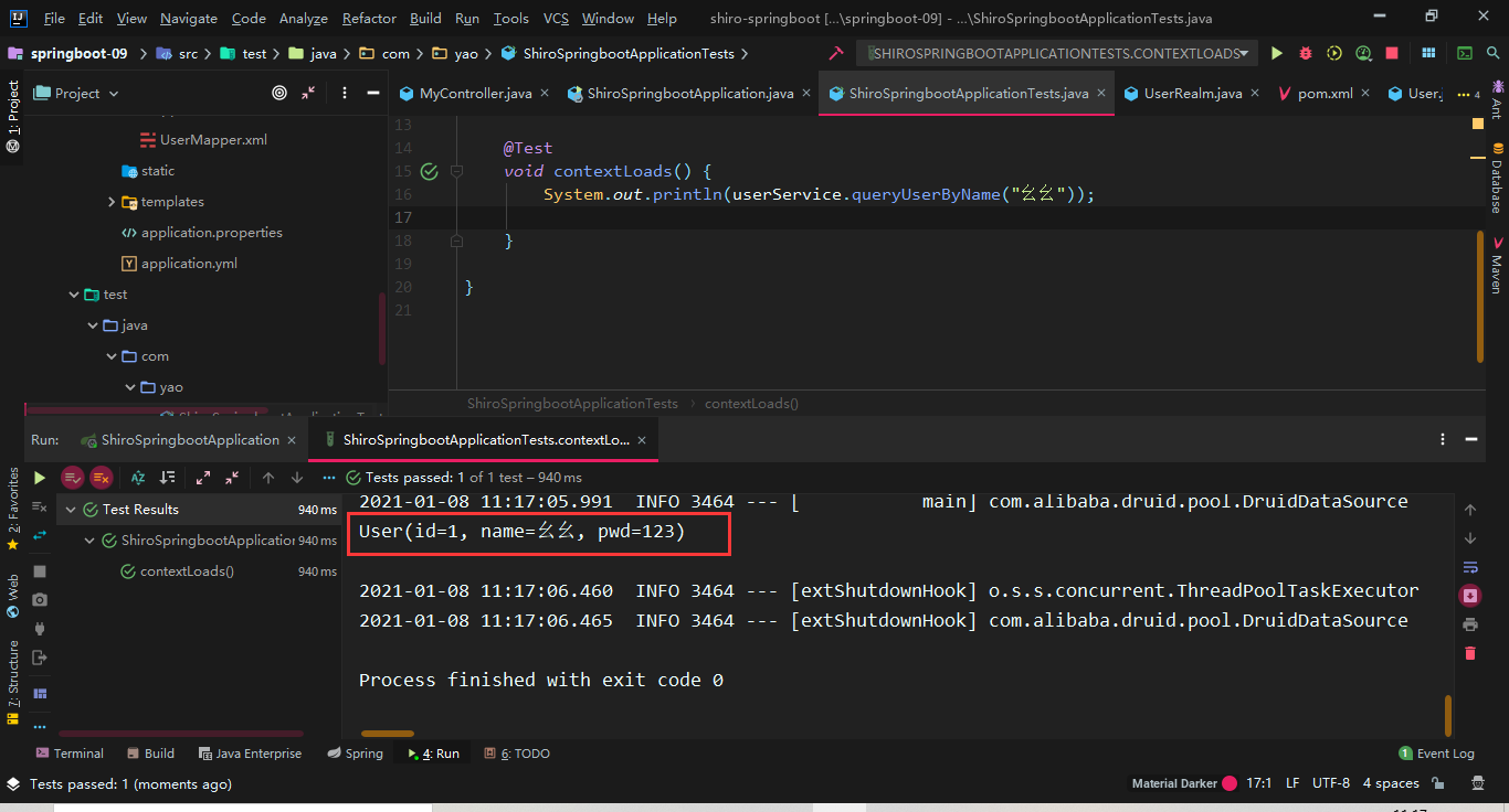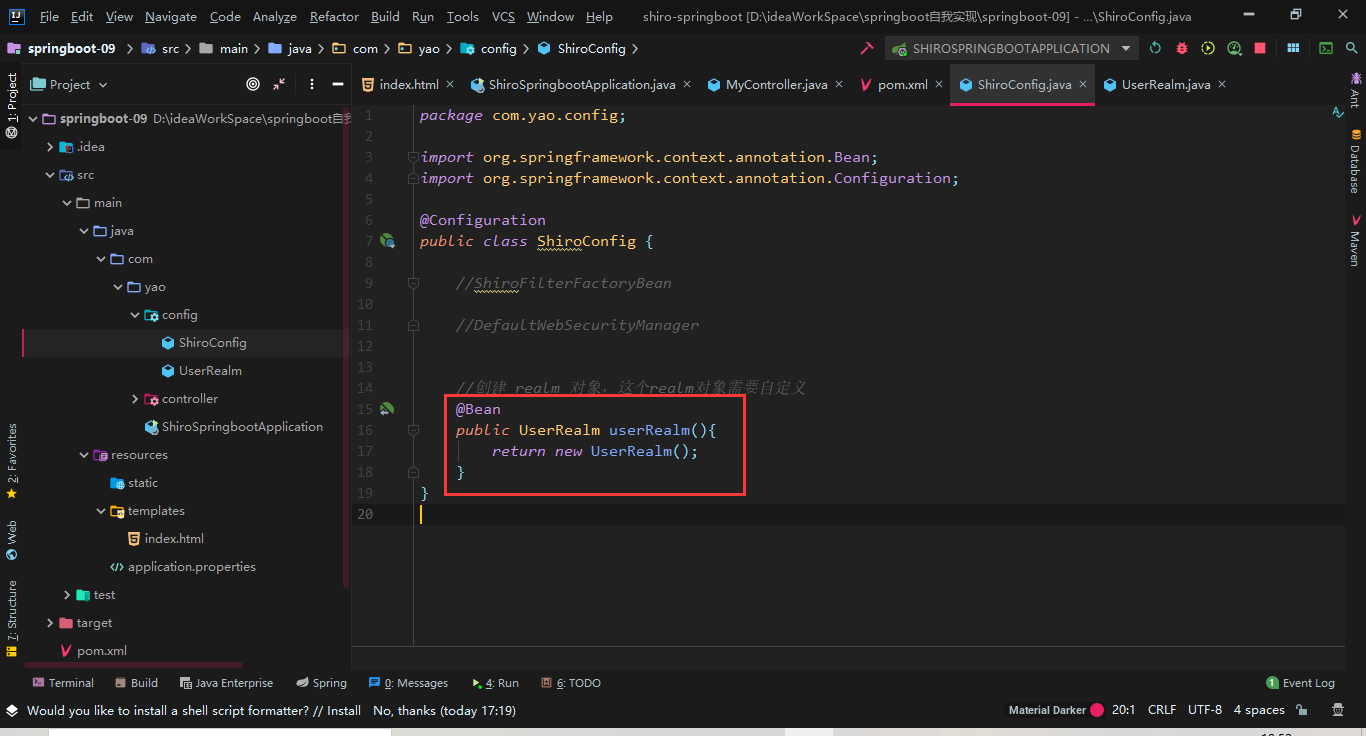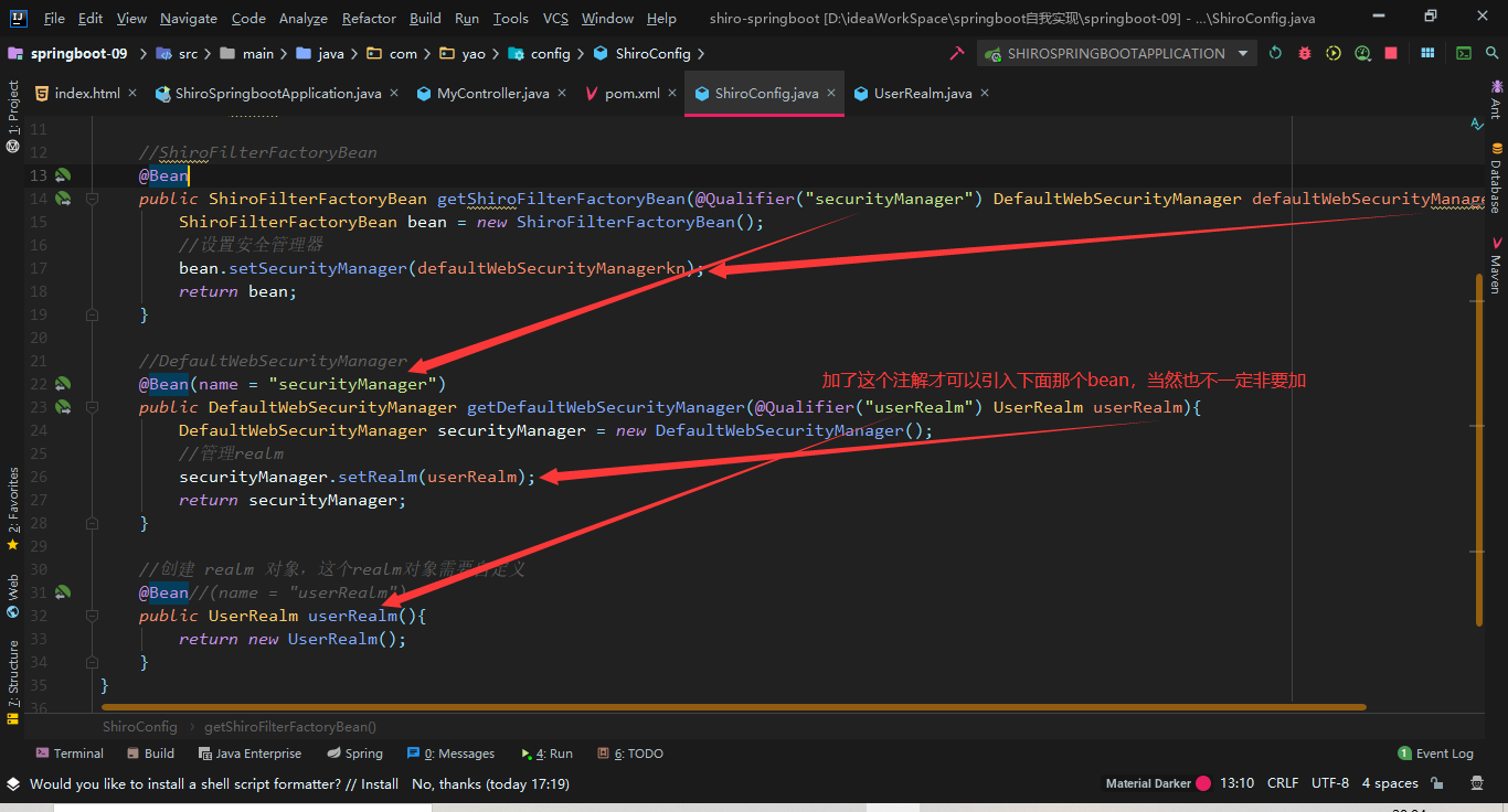 1.6将UserRealm注册到ShiroConfig里面去,是我们自己写的这个类被spring托管