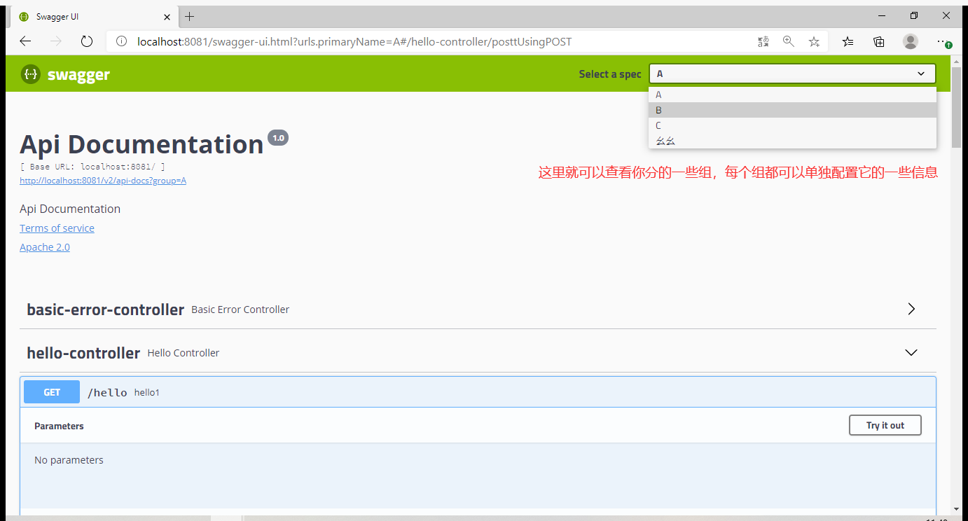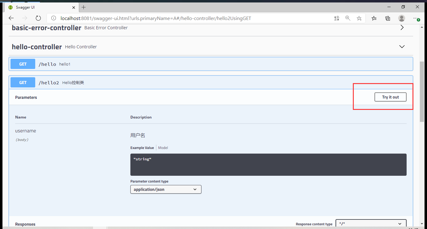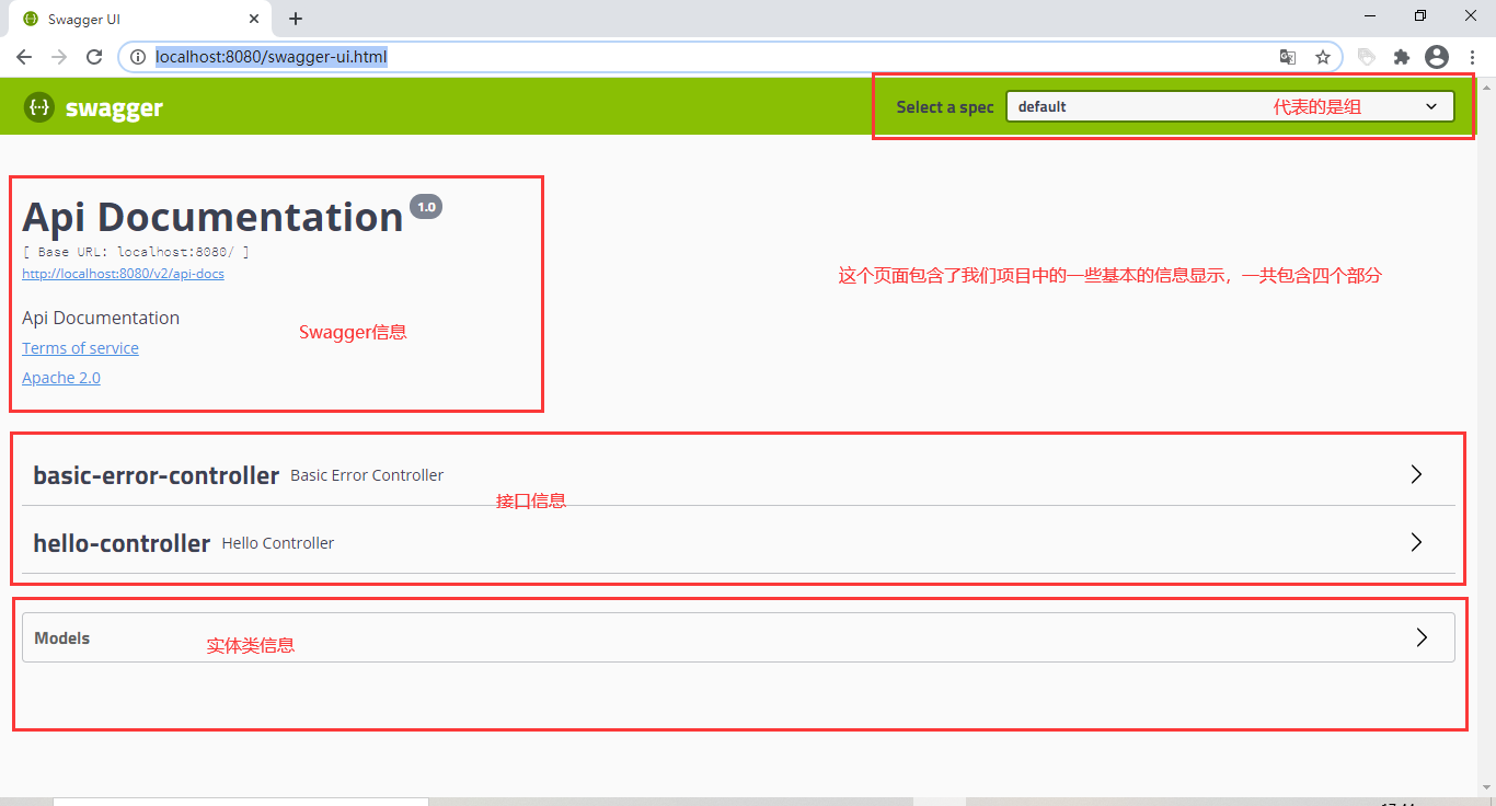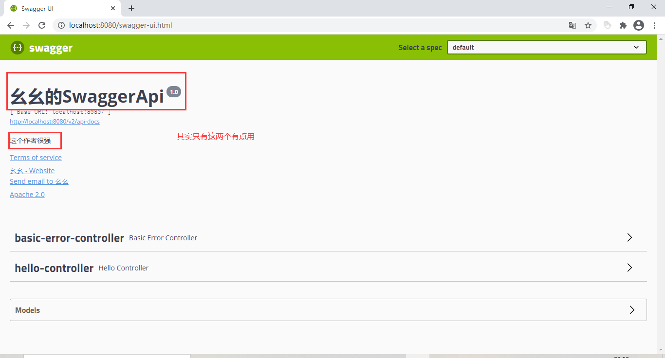 2.3.2访问http://localhost:8080/swagger-ui.html测试,会发现直接就有了这个页面,我们明明都没有创建这个页面