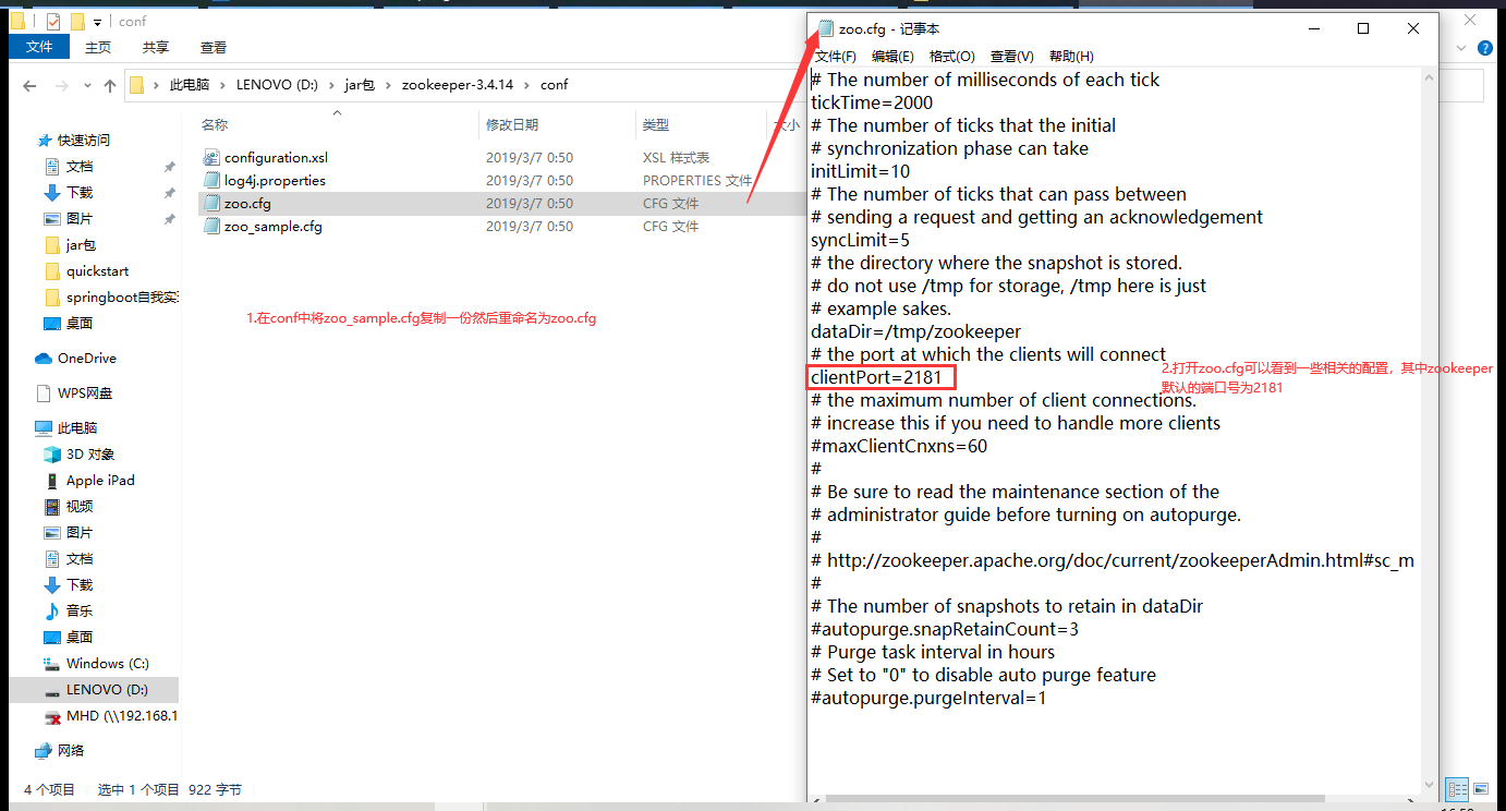 由于我们之前没有改这个2181这个端口号,因此这里我们不需要改变什么东西