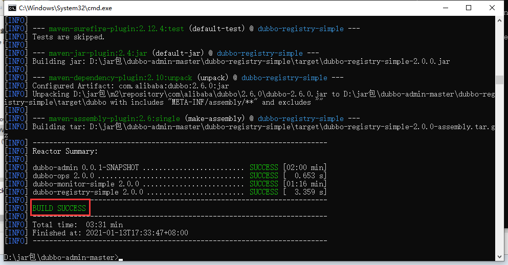 3.7打包这个dubbo-admin成jar包执行