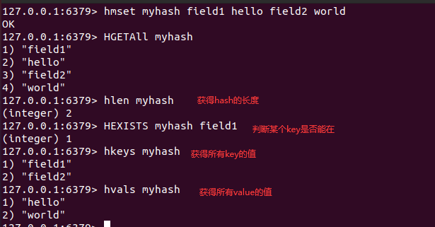 是一个map集合,是<key,value>这样的一个形式,这里hash的命令呢都是以h开头的,本质和String类型没有太大区别