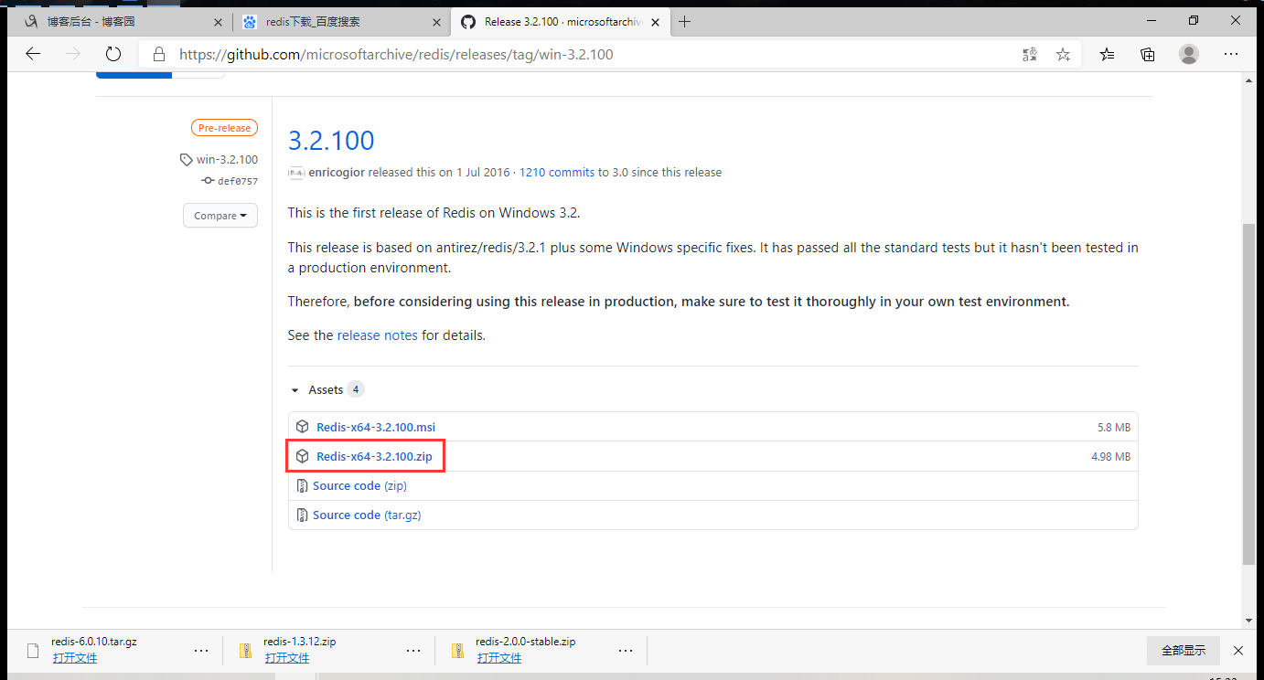 这里采取直接在windows中进行测试,因此需要去下载以下redis的安装包