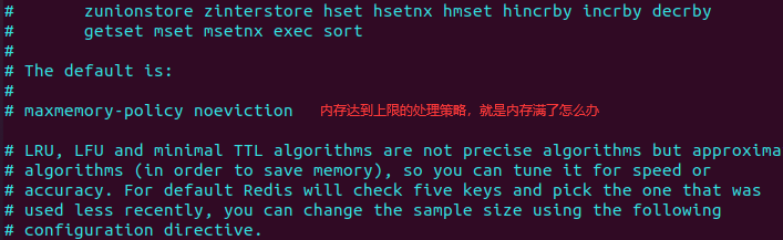 1.noeviction: 不删除策略, 达到最大内存限制时, 如果需要更多内存, 直接返回错误信息。(默认值)