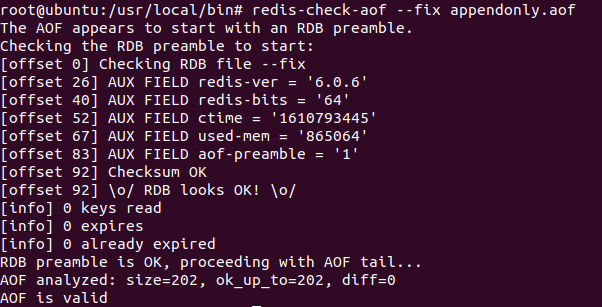 redis给我们提供了redis-check-aof --fix appendonly.aof来进行appendonly.aof的修复