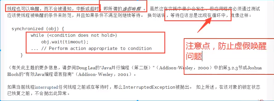 这里一定要用while,if只会判断一次,等待应该总是出现在循环中。不能说判断条件中途改变了就立刻不wait了