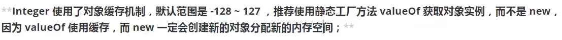 // 你要去复用的时候它就会重新创建一个Integer对象,导致我们引用的两个对象并不是指向同一个的。
