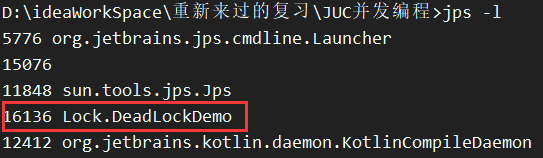1. jps-l 定位发生死锁进程号