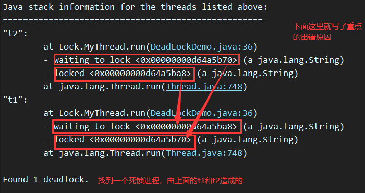 new Thread(new MyThread(lockB,lockA),"t2").start();