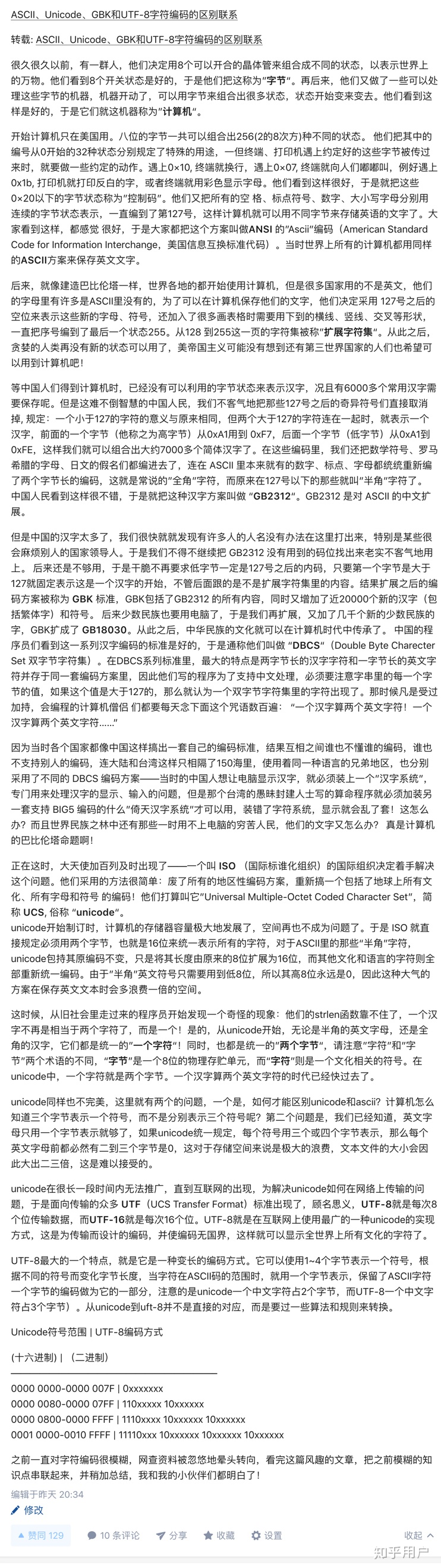 ASCII、Unicode、GBK和UTF-8字符编码的区别联系