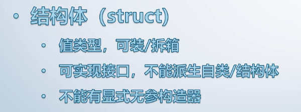 6. 结构不具有面向对象的特点,结构不可以继承自另一个结构或被继承,不能有基类,但可以继承自接口。