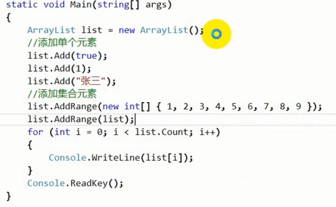 arraylist可以放入任何类型,其中元素都是obj类型,addrange()方法可以把数组元素放入,而不是数组整体