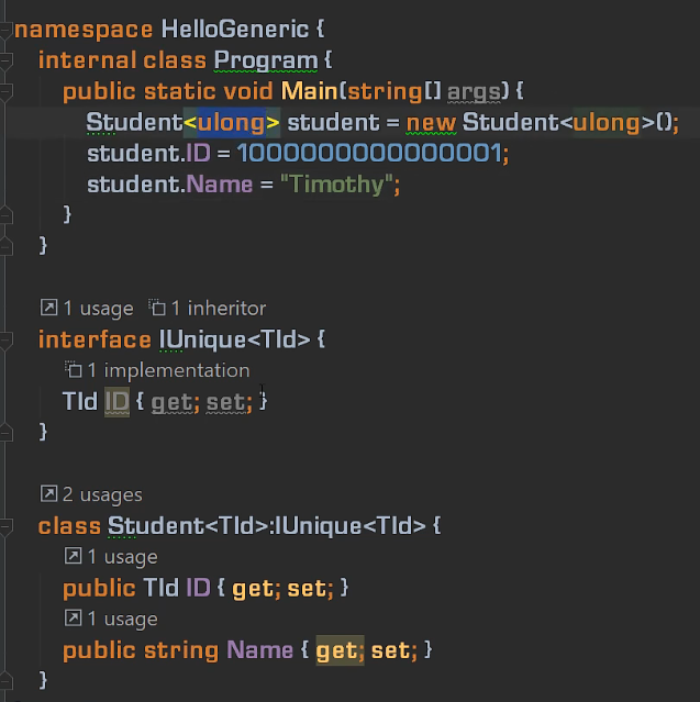 类必须放到接口前面,每种参数类型分别使用一个单独的where关键字