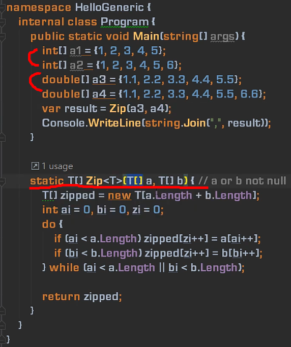 理解的意思:可以互换,就是我们可以通过装箱或者强制类型转换成目标类型的 类型都可以用于类型参数传入。
