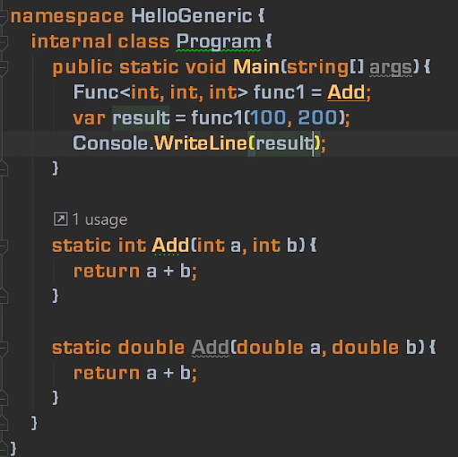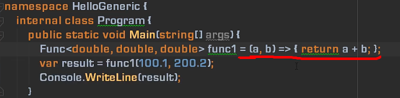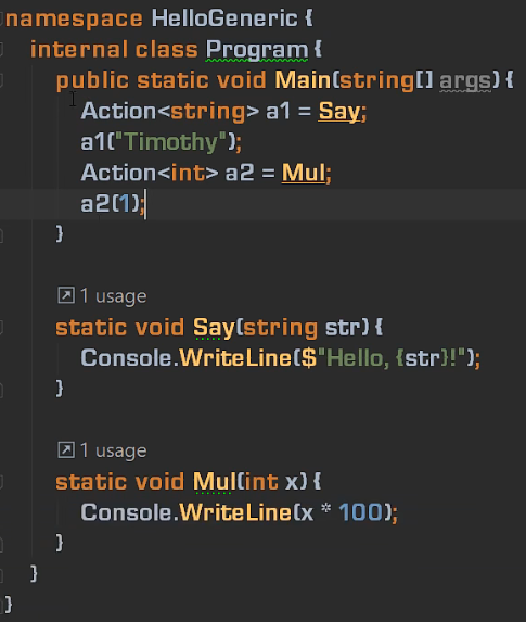 泛型委托: action<T>无返回值,func<T,T,Tresult>有返回值