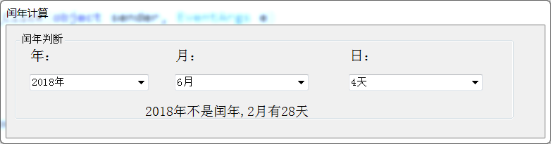 label4.Text = year + "年不是闰年," + "2月有28天";