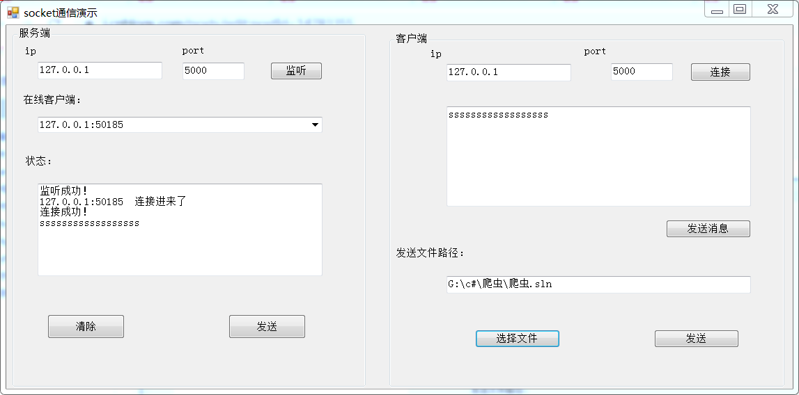 客户端没有socketwatch,直接创建socket,连接用connect(),发送用socket.send(),接收用receive(),数据也是循环接收的