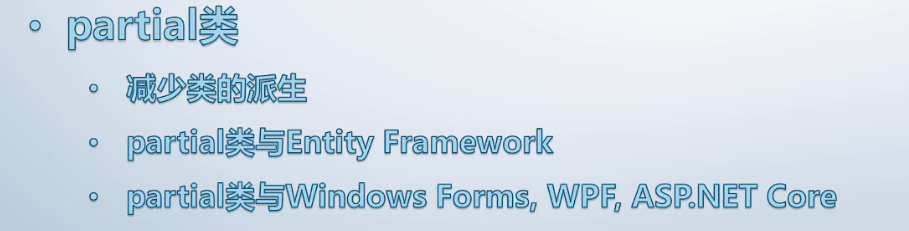 (1) 关键字partial是一个上下文关键字,只有和 class、struct、interface 放在一起时才有关键字的含义。因此partial的引入不会影响现有代码中名称为partial的变量。
