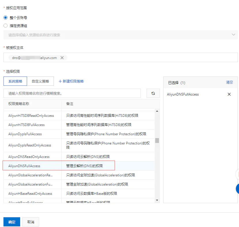 右上角点击头像,然后点击AccessKey,进去后启用AccessKey,建议用子账号,给子账号添加DNS管理权限