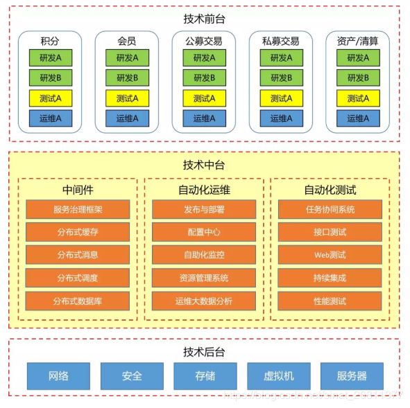 也就是说,打造「技术中台」的前提是平台化,而平台化的先决条件是「组织结构垂直化,技术工具公共化」。