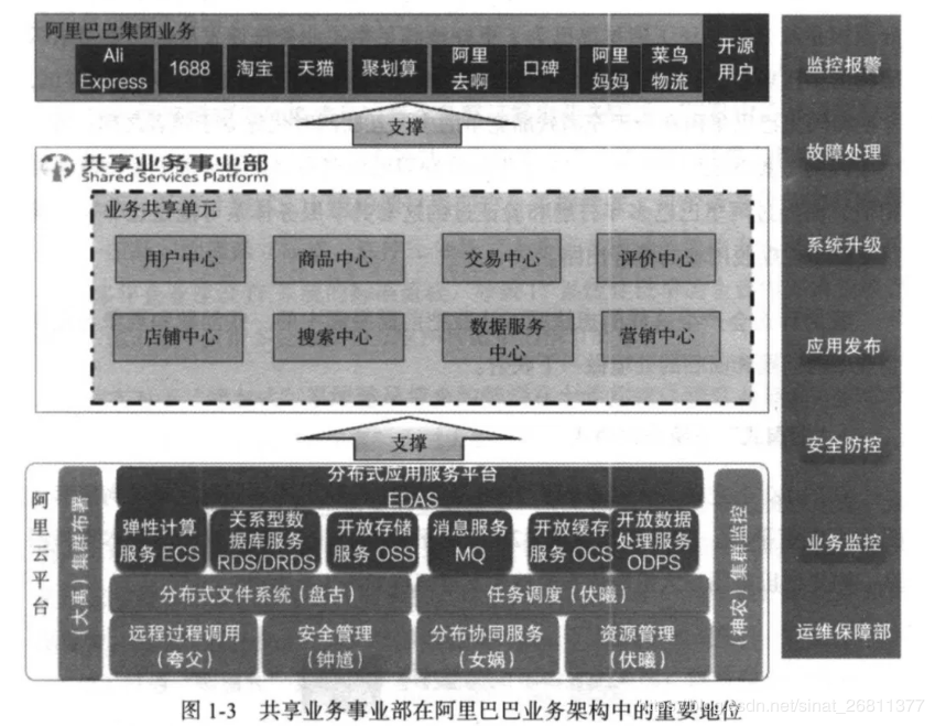 针对每一个建设的服务中心,从组织架构的形态上发生对应调整,不同角色的人员(架构师、开发人员、UED 工程师等)组建成了一个新的组织,每一个这样的组织都针对某一服务中心提供持续的服务能力——开发及运维。所以,在如今的阿里巴巴共享服务体系中,每一个服务中心都是由一个少则 100 多人,多则 4、5 百人的团队对负责的服务中心进行专业的运营。