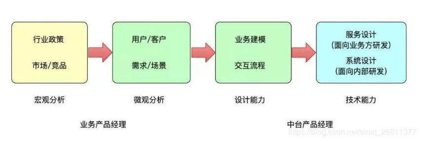 如上图,中台产品经理也被认为是 B 端产品经理的一种类型,有 B 端通用的能力要求,比如擅长做抽象建模、具备一定的研发技术功底、懂 UML 等,不同企业要求不同,此处就不一一展开了。