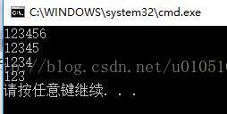 #include<iostream> #include<string> using namespace std; int main() { string str; str = "123456"; cout << str << endl; //方法一:使用substr() str = str.substr(0, str.length() - 1); cout << str << endl; //方法二:使用erase() str.erase(str.end() - 1); cout << str << endl; //方法三:使用pop_back() str.pop_back(); cout << str << endl; return 0; }