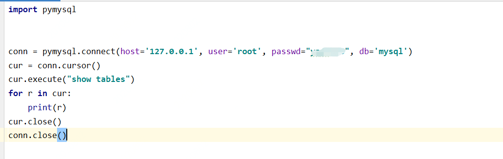 今天学习的是:用python代码实现连接本地的mysql库并读取库中的表