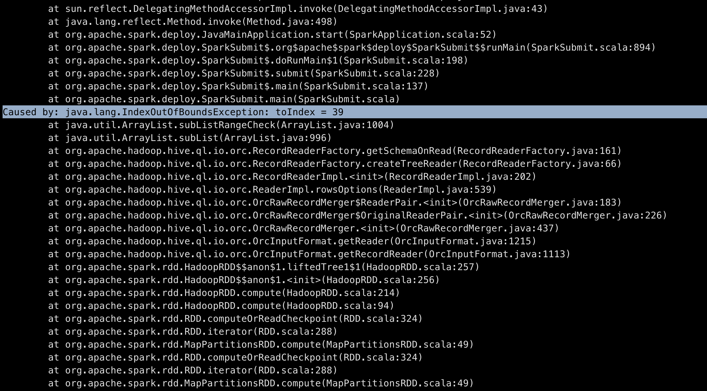 [hive/spark]Caused by: java.lang.IndexOutOfBoundsException: toIndex = 39