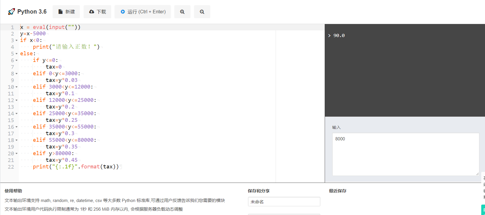 请编写一个程序,根据用户输入计算个人所得税。