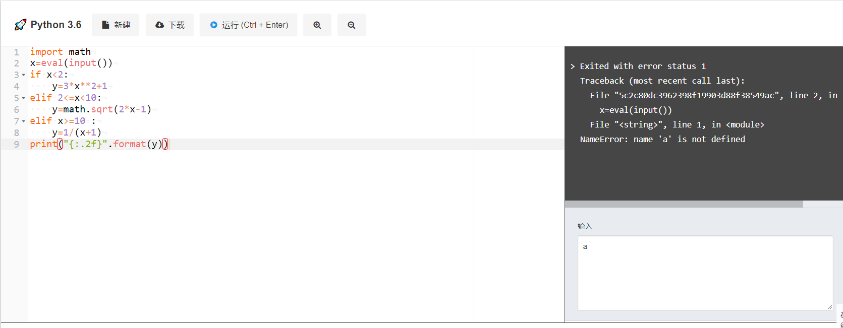 在实验二里,没有输入数字的时候,会显示,出现了名称错误