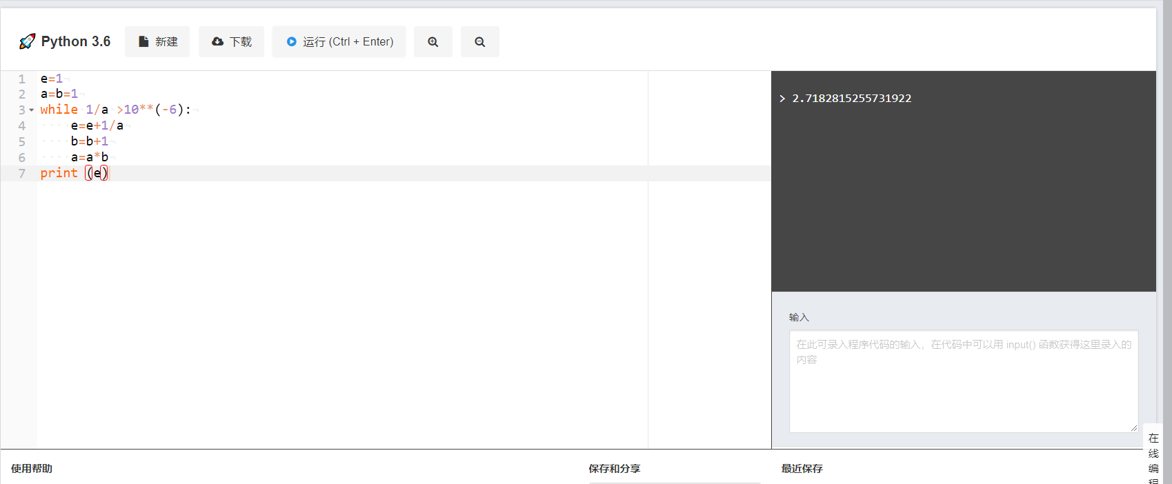(1)计算底数e的值