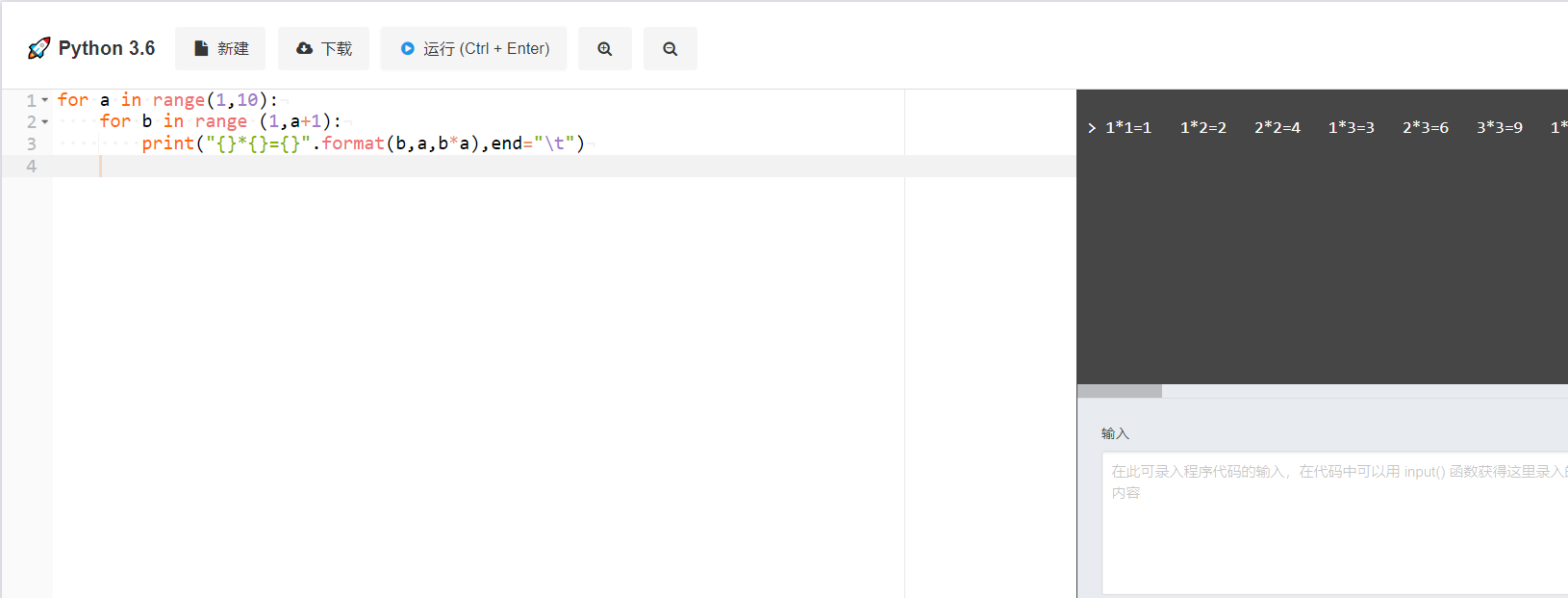 在这一题里面,运用for i in range结构将1到9挨个提取出来
