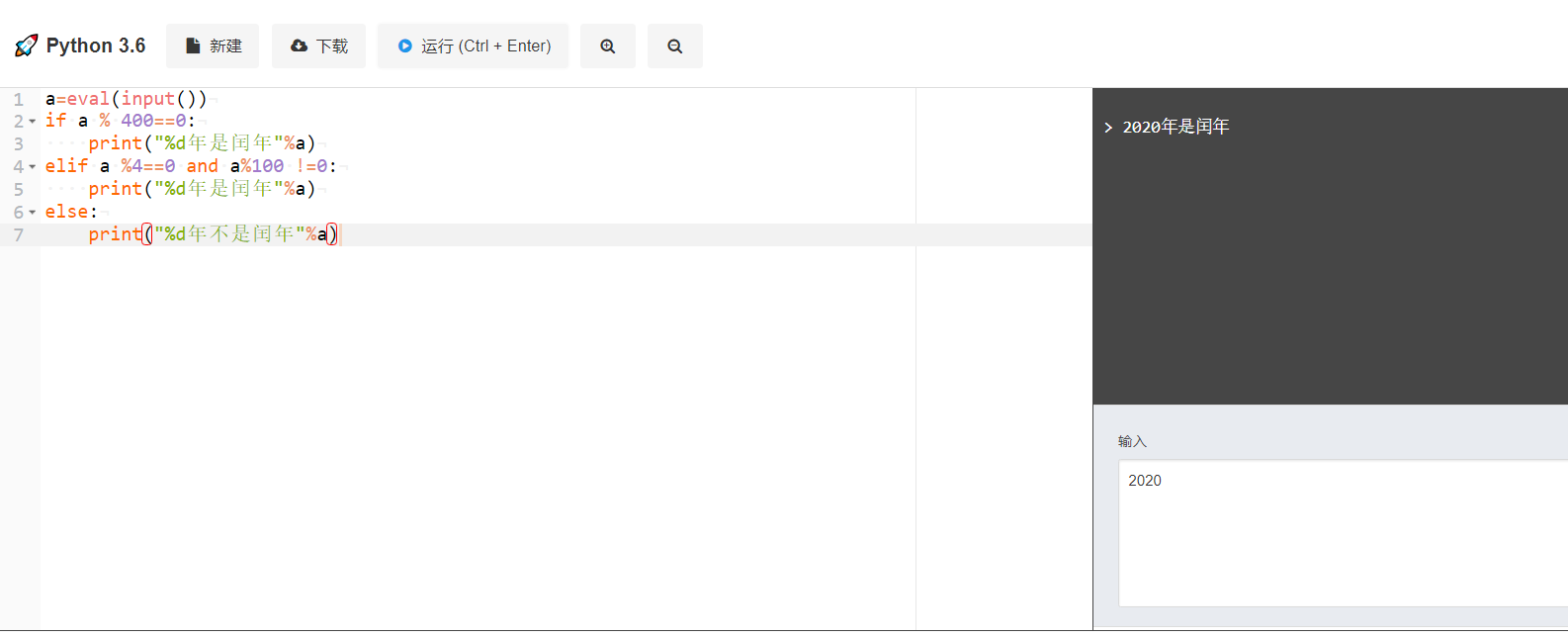 输出年份是否闰年的判断结果,请见输入输出示例说明