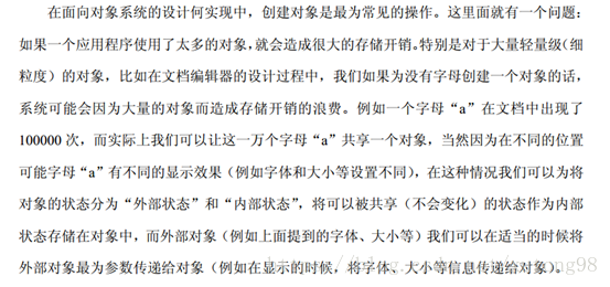 (3)适用情况:是以共享的方式,高效的支持大量的细粒度的对象。
