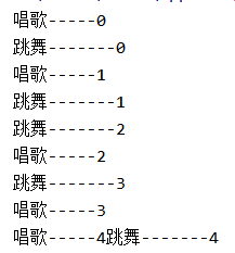# 多线程执行多任务 import threading import time def Sing(): for i in range(5): print('唱歌-----%d' % i) time.sleep(1) def Dance(): for i in range(5): print('跳舞-------%d' % i) time.sleep(1) if __name__ == '__main__': s = threading.Thread(target=Sing) d = threading.Thread(target=Dance) # 开启线程 s.start() d.start()
