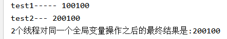 # 多线程共享全局变量 import threading import time num = 100 def test1(): global num for i in range(100000): num += 1 print('test1-----', num) def test2(): global num for i in range(100000): num += 1 print('test2---', num) if __name__ == '__main__': t1 = threading.Thread(target=test1) t2 = threading.Thread(target=test2) t1.start() t2.start() while len(threading.enumerate()) != 1: time.sleep(1) print("2个线程对同一个全局变量操作之后的最终结果是:%s" % num)