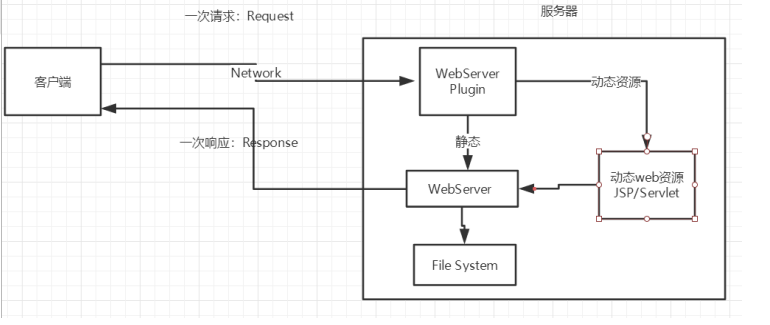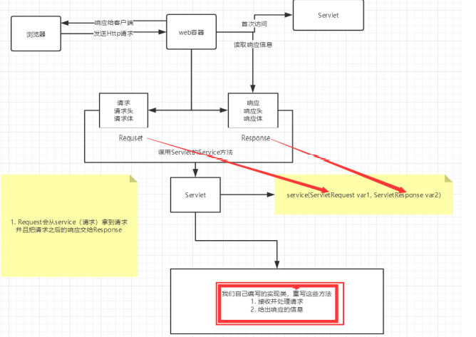 web服务器接收到客户端的http请求,针对这个请求,分别创建一个代表请求的HttpServletRequest对象,代表响应的一个HttpServletResponse;