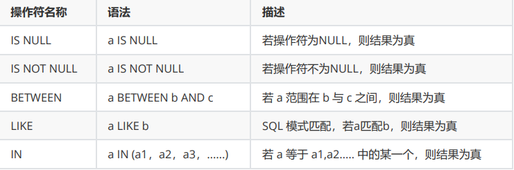 数据库中的表达式 : 一般由文本值 , 列值 , NULL , 函数和操作符等组成
