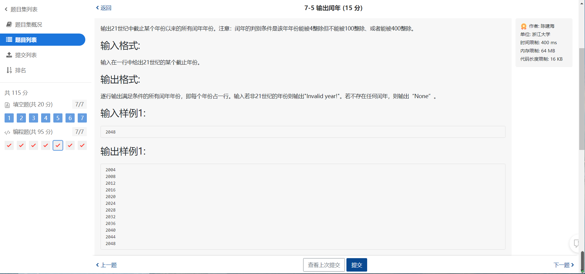 | 2000 | Invalid year! | 2000不属于21世纪 |