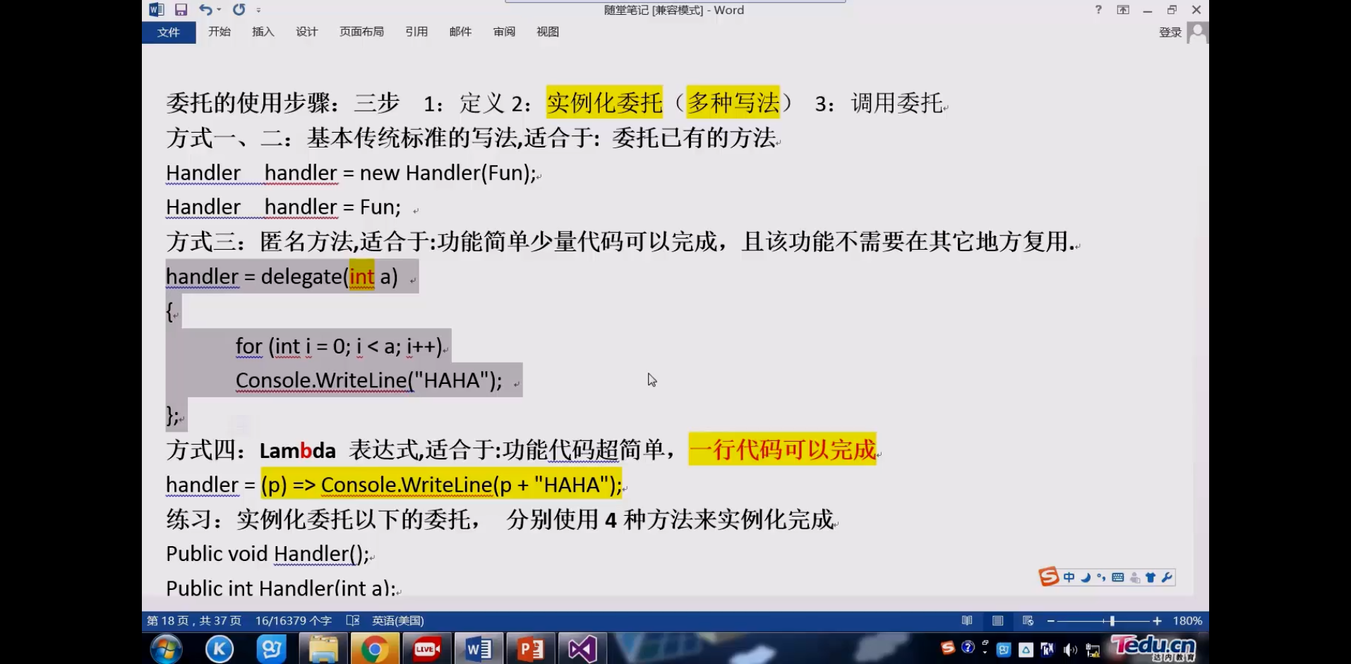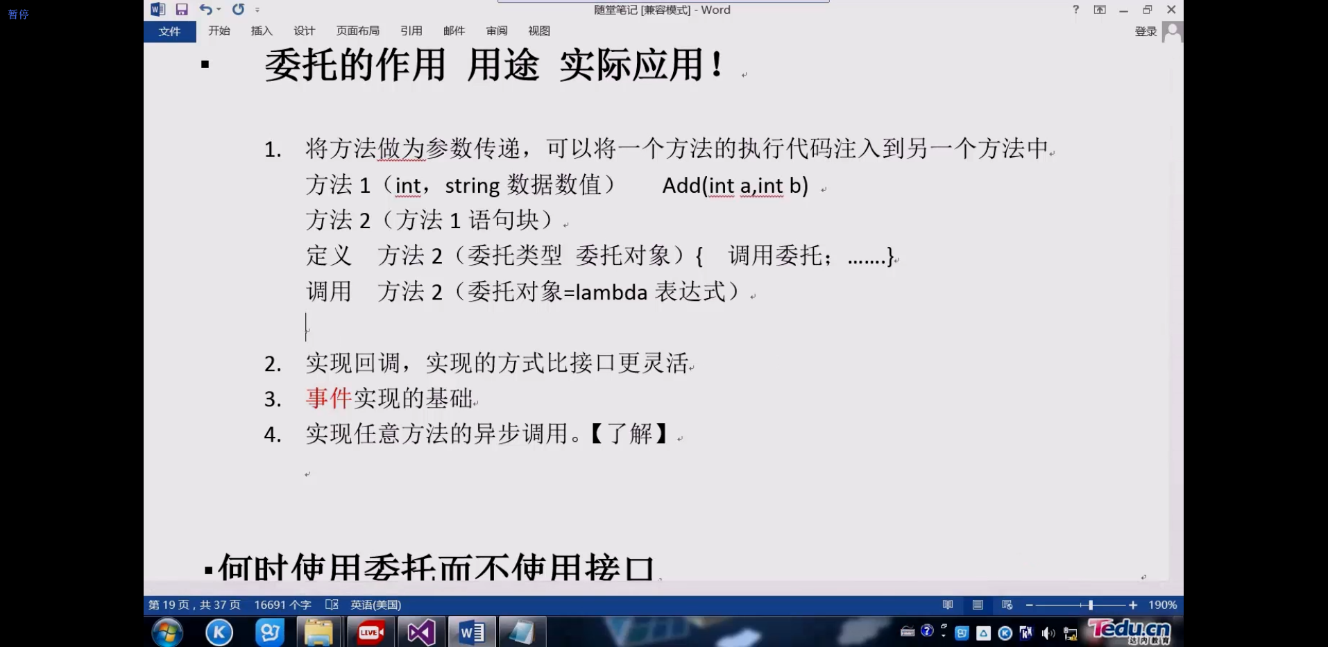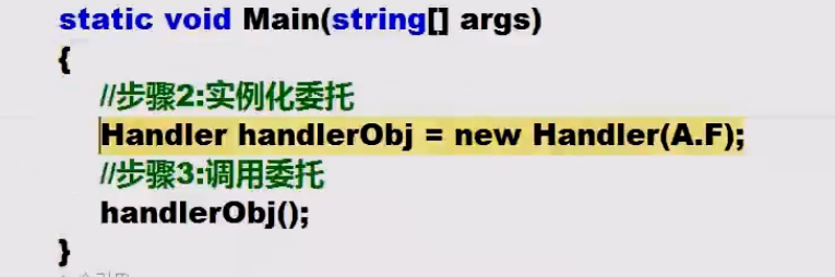 当调用委托时就调用了这个方法。【委托能储存方法的地址【引用】】【间接调用】